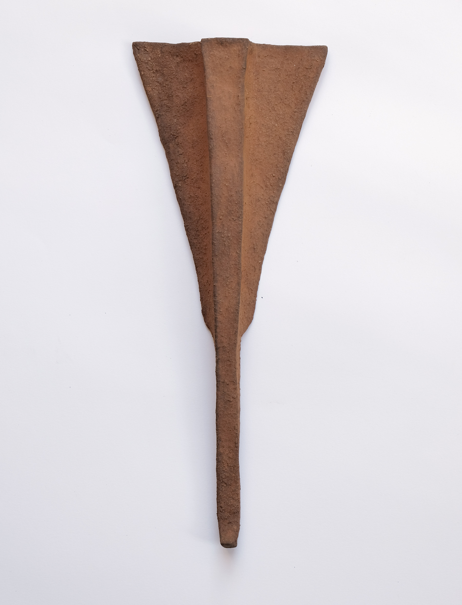 Ci-dessus Idole #01 : dent de herse, reproduction terre cuite, 2023